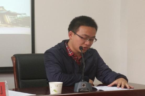 会议第二项是腾跃博士作主题工作汇报。他首先为大家播放了一段VCR来介绍自己在宜昌市长阳土家族自治县资丘镇进行文化服务工作的大体情况,视频中的资丘镇虽然是国家级贫困地区,但是当地却有着丰富的民俗文化瑰宝,也正因如此,热衷于非遗文化保护的腾跃同学毅然扎根于此,进行了为期一年的文化志愿服务。虽然面临着天气恶劣、居住条件差、饮食不惯等困难,但腾跃却说“爱上了这块土地,爱上了这块土地上的文化瑰宝……,一旦发现文化志愿工作的乐趣与意义,就不会在乎这些困难了”。接着,腾跃博士将自己的工作内容分为三个方面介绍,分别是“抢救非遗资源”,“开展非遗宣传”以及“开展文化传承”。三项工作围绕非遗文化展开,让与会同学在了解文化志愿工作重要性的同时也深深感受到了这份工作的艰巨,对腾跃的敬佩化作一阵阵的掌声。随后,腾跃博士在报告中提到了自己在文化志愿服务时遇到的民间艺人,他们有家境贫穷但手握绝技的孙家蜀;有与自己同为文化工作者并且教授自己民俗文化的田汉山;有专注于非物质文化传承的国家级传承人张言科;有对土家文化十分热忱的村中老支书谢克富。值得一提的是,这四位传统文化的传承者都是多年的老党员,他们扎根基层,不图名利,通过自己的努力将土家文化传给后人,这恰恰是一个优秀共产党人最真实的写照。就这样,在一段段珍贵的视频与文字资料的描述中,腾跃博士以“学以致用,知行合一,勇于担当,服务基层”的十六字工作总结结束了自己的汇报。