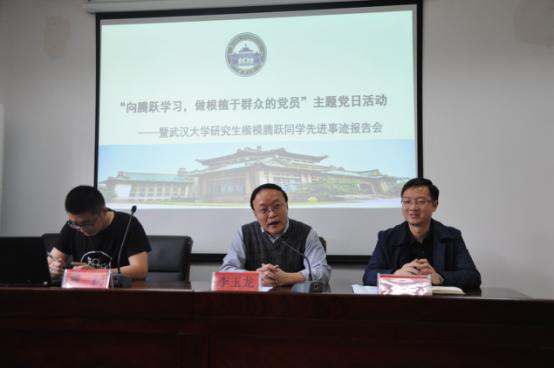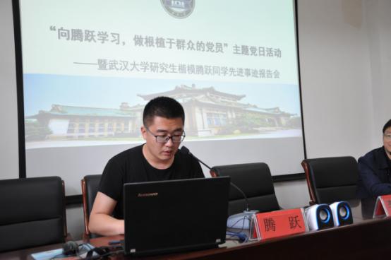 随后,李彦睿同学与邓碧玲同学代表与会学生发表了自己听完腾跃博士主题报告后的感想。其中,李彦睿同学说“我们应该见贤思齐,我们要向腾跃同学学习,始终保持共产党的先进性与纯洁性,努力发挥模范带头作用,有理想,有追求,有担当,有作为,有品质,有修养,努力成为一名学以致用的大学生,一名德才兼备的共产党员”。